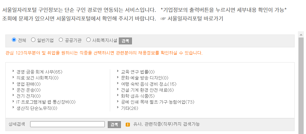 서울일자리 포털 구인정보 바로가기