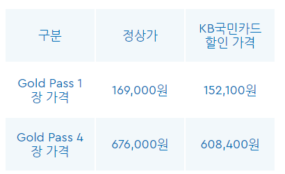 * 연간이용권(Gold Pass) 혜택 자세히보기 (클릭)