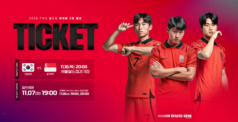 2026 FIFA 월드컵 아시아 월드컵 2차 예선이 열릴 예정이며 싱가로프와의 경기예선전 티켓 예매를 진행합니다. 선착순으로 티켓을 예매하기 때문에 티켓팅방법을 미리 확인하시고 진행해 보시기 바랍니다. 수험생을 위한 선착순 무료티켓증 이벤트를 진행 중이니 놓치치 마시고 지금 바로 신청하세요