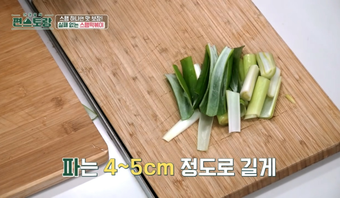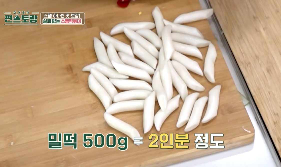 편스토랑 평생떡볶이 영상레시피 평생떡볶이 요리재료 밀떡 500g, 어묵 4장, 대파 1대, 다진 마늘 0.5T, 고춧가루 4T, 설탕, 간장 2T, 굴소스 2T, 고추장 2T, 식용유 1T, 후추 20바퀴(1t), 굵은 소금 1/3T, 물