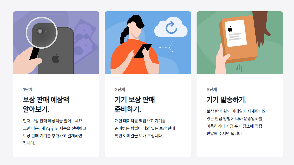1단계 보상판매 예상액 알아보기 >2단계 기기보상 판매 준비하기 > 3단계 기기 발송하기