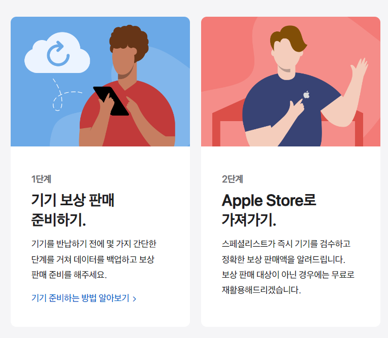 온라인 또는 Apple Store에서 편한 방식으로 보상 판매하세요. 예상액 확인부터 기기 반납까지 모든 과정을 도와줍니다.