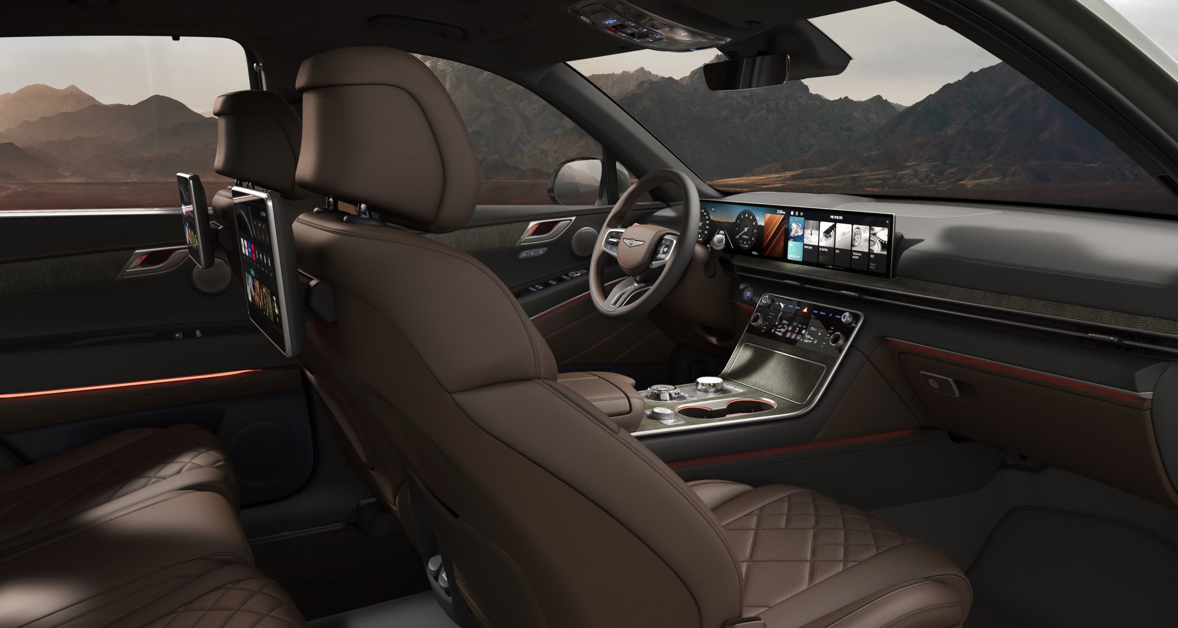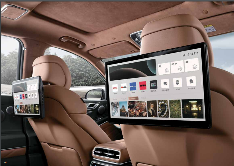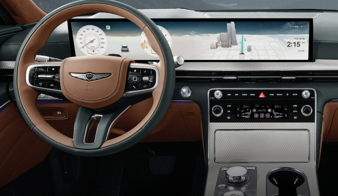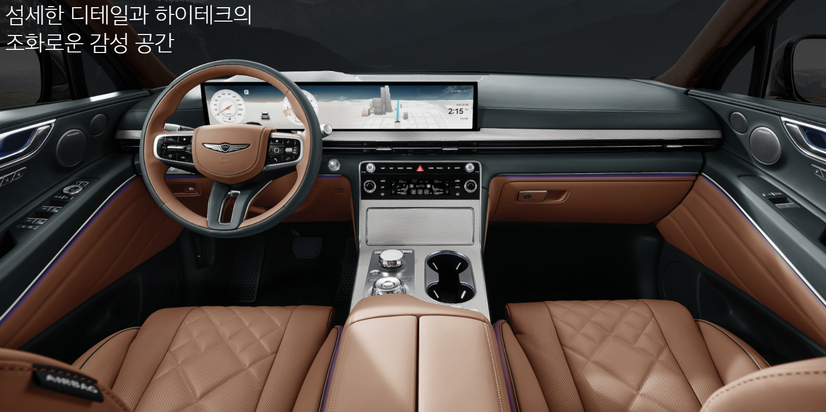 제네시스 인포테인먼트 시스템과 디지털 센터 미러 ,제네시스 디지털 키 2 , 실내 지문 인증 시스템(개인화, 시동, 결제 등), 독립제어 풀오토 에어컨의 기능을 갖추고있습니다.