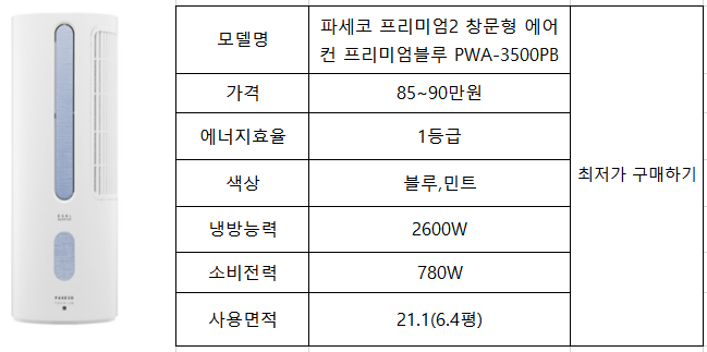 파세코 프리미엄2 창문형 에어컨 프리미엄블루