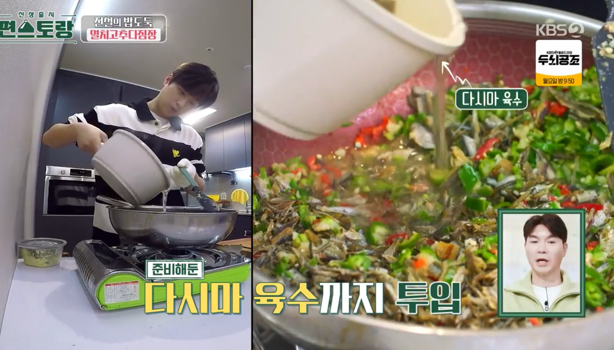 2. 다진멸치와 국간장 4T, 멸치액젓 3T, 매실액 1T, 참기름 2T, 물(다시마 육수) 적당량을 넣고 볶아준다.