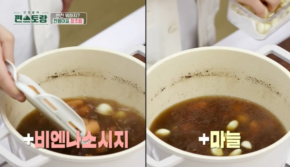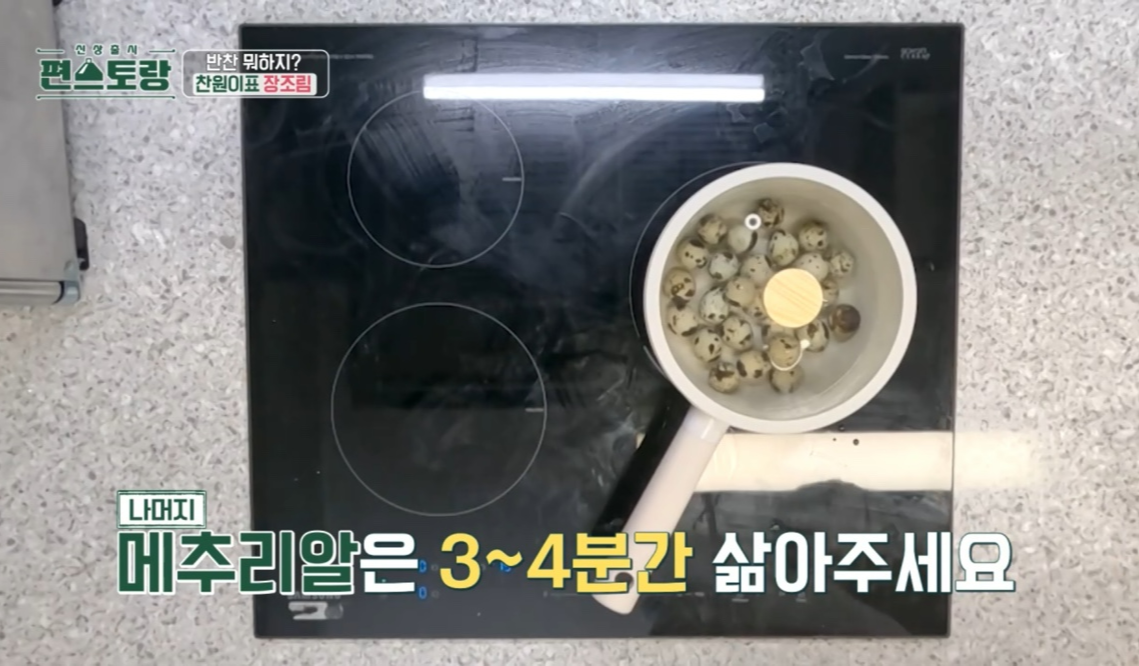 4. 10분이 지나면 알마늘, 삶은 메추리알을 넣고 중불에 10분 졸여준다.