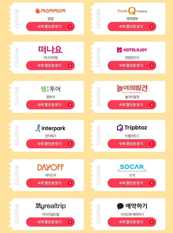여행 시 숙박을 아직도 제값 주고 예약하셨나요? 2024 숙박 세일 페스타의 숙박할인권을 발급하시면, 7만 원 이상의 숙박예약 시3만 원의 할인혜택을 받아보실수 있습니다. 매일오전 10시 선착순 진행 중이니 지금 바로 발급신청하시기 바랍니다.